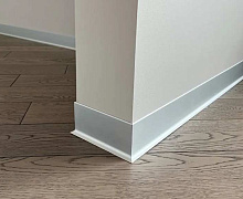 Особенности монтажа: данный алюминиевый плинтус крепится к стене на жидкие гвозди. Для оформления внутренних и наружных углов используется специальная алюминиевая фурнитура.
