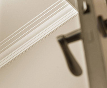 Способ монтажа: карниз из полистирола высокой плотностизапиливается под 45 градусов при помощи ножовки и стусла. Для аккуратного оформления стыков используется специальный клей-шпатлёвка Adefix F, с помощью которого можно замазать царапины и вмятины.