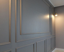 Способ монтажа: молдинг из полистирола высокой плотностизапиливается под 45 градусов при помощи ножовки и стусла. Монтируется к стене на жидкие гвозди. Для аккуратного оформления стыков используется специальный клей-шпатлёвка Adefix F, с помощью которого можно замазать царапины и вмятины.