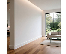 Белый плинтус из UHD Polymer. Длина 2000 мм. Высота 99 мм. Ширина 15 мм.
