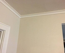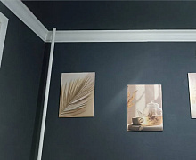 Способ монтажа: плинтус из полистирола высокой плотностизапиливается под 45 градусов при помощи ножовки и стусла. Идеальную стыковку плинтуса обеспечит РемКомплект с той же краской, которой был окрашен плинтус.